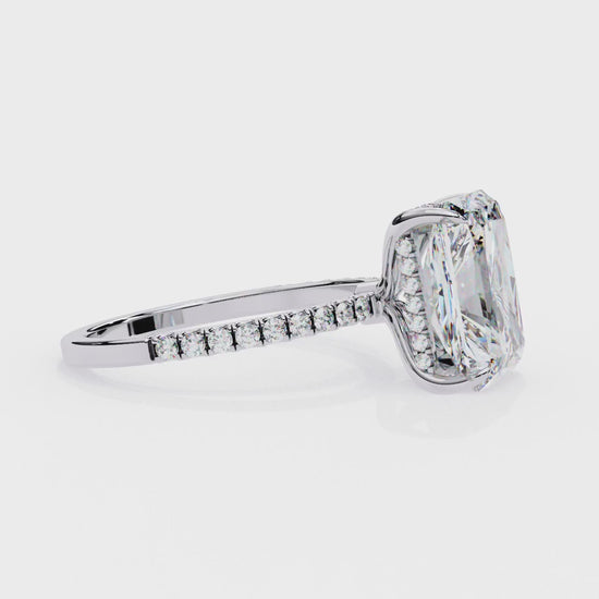 "BlazeLine" represents the intense brilliance of a radiant-cut solitaire diamond as the central "blaze," with round accent diamonds on the shank forming a continuous sparkling "line." The name reflects bold elegance, fiery light, and refined design in perfect harmony. |