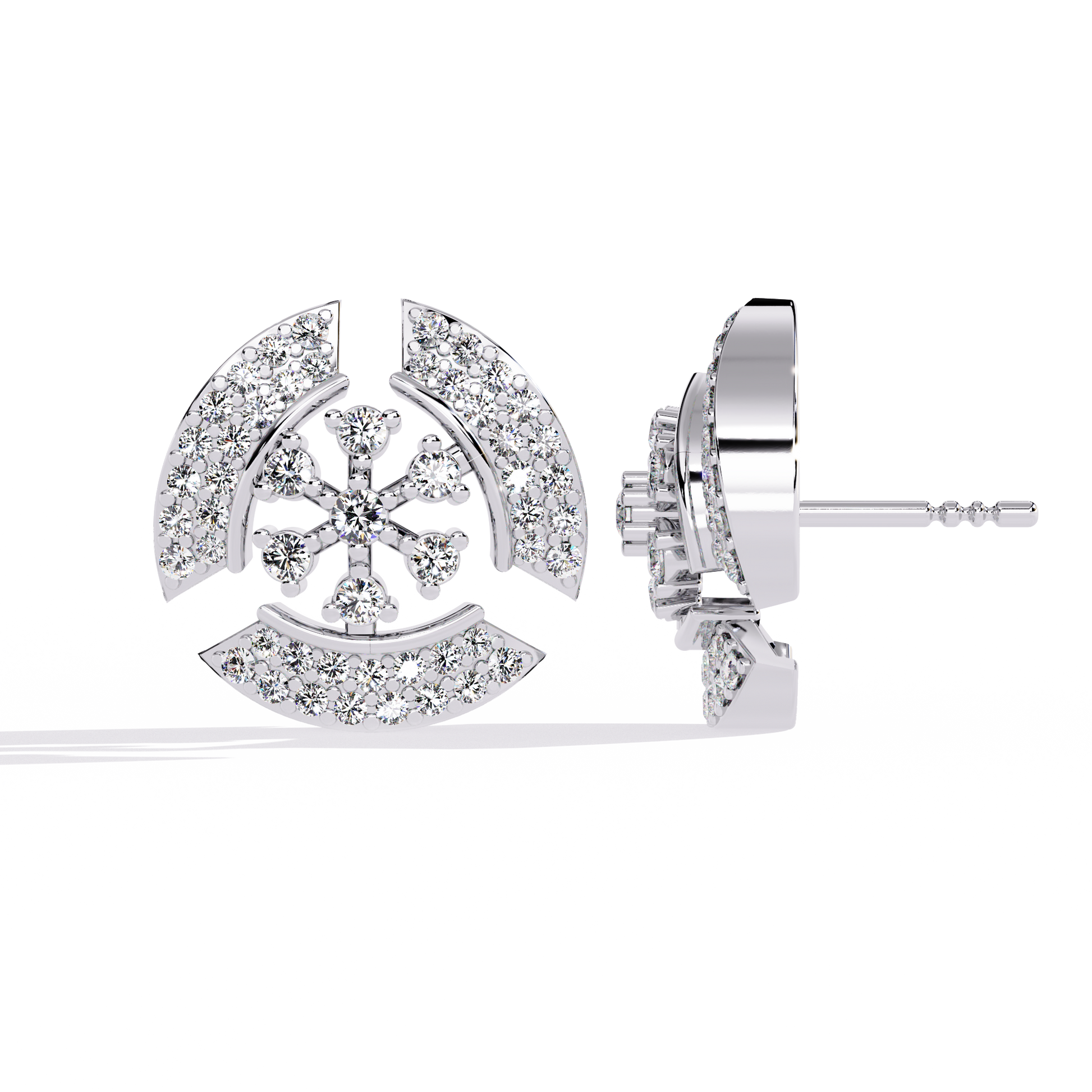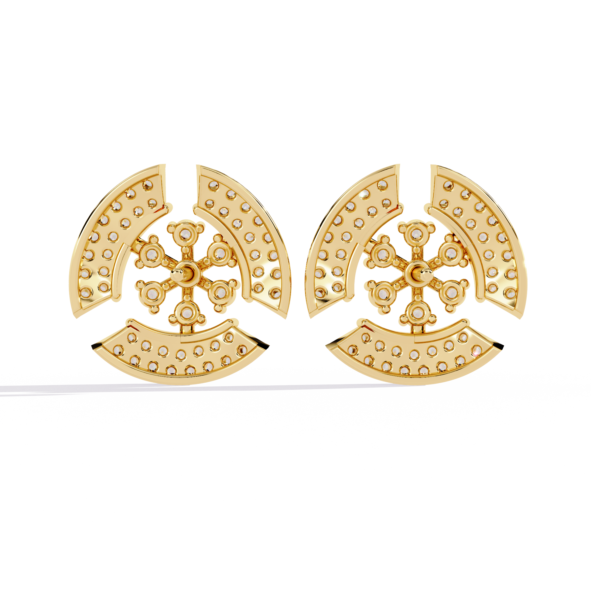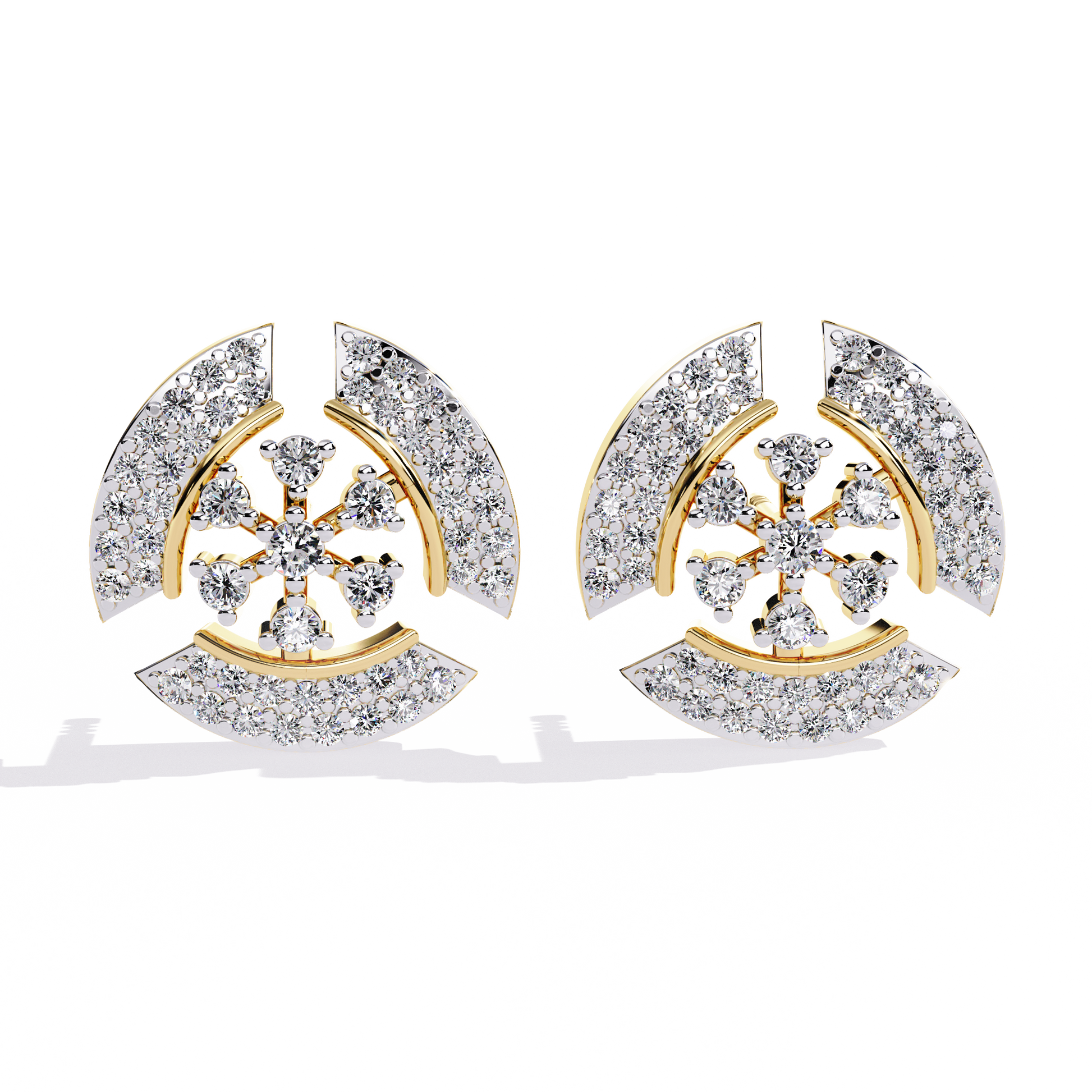 Celestia Halo Studs are radiant earrings designed with a central 7-diamond floral cluster, encircled by three crescent-shaped arcs shimmering with pavé diamonds. Inspired by celestial halos and starlit beauty, they symbolize elegance, harmony, and cosmic charm — perfect for lighting up any moment. |
