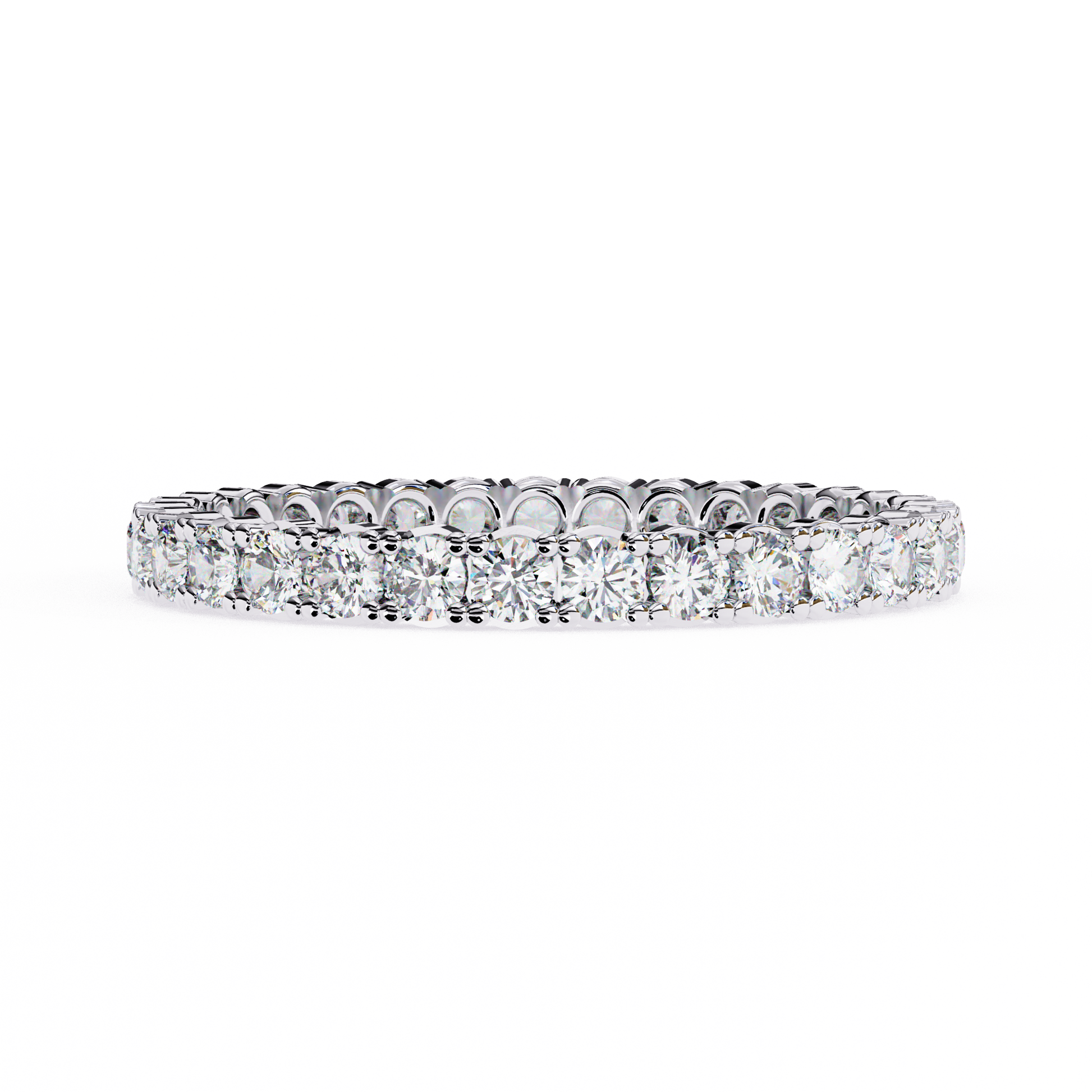 "Eterna" combines the idea of eternity with the specific number of 33 round diamonds, symbolizing unending love and brilliance. The name reflects the continuous sparkle and timeless elegance of a full-circle diamond band. |