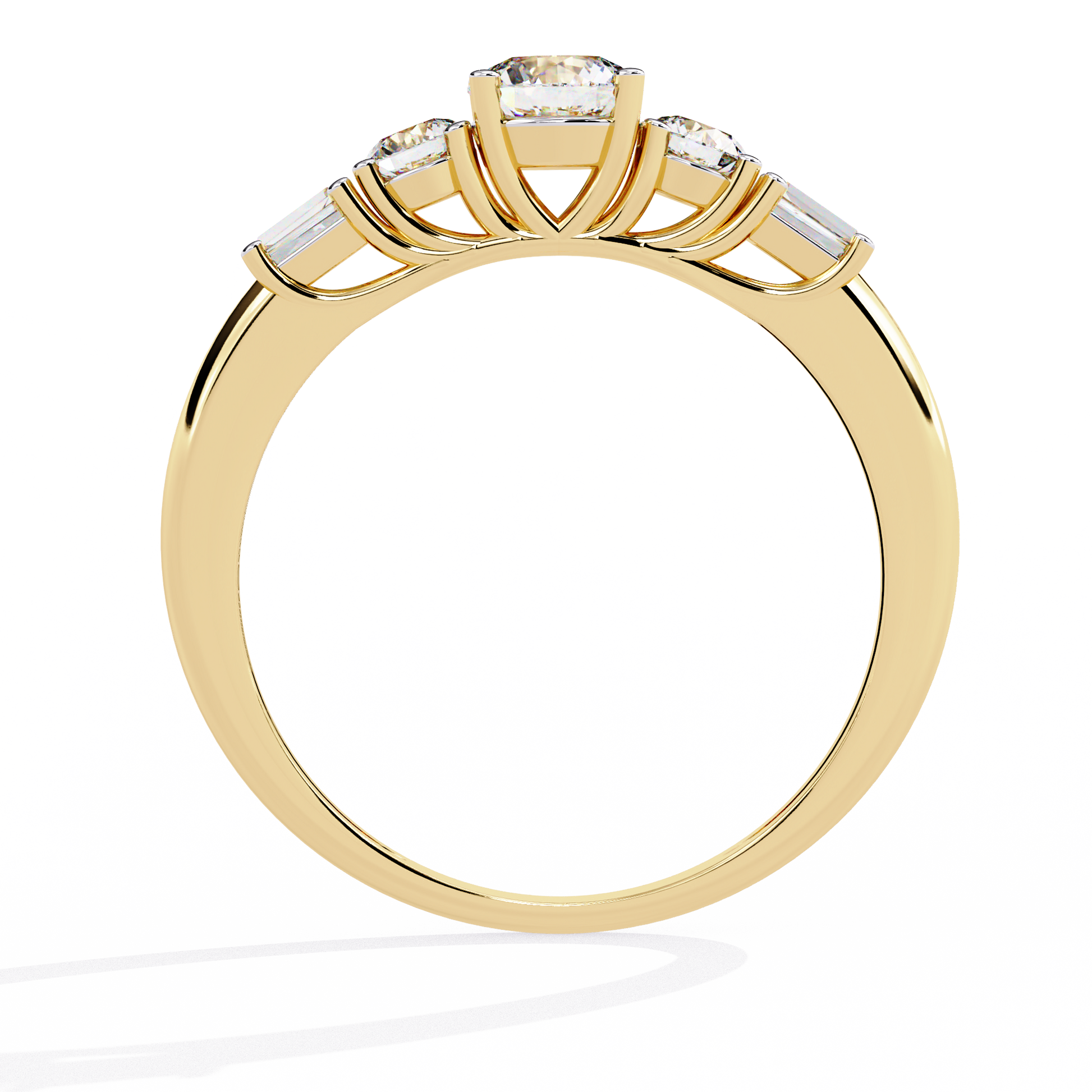 # of Diamonds : 5Total Carat Weight : 0.72ctSetting Type : ProngShape :- Round & Baguette