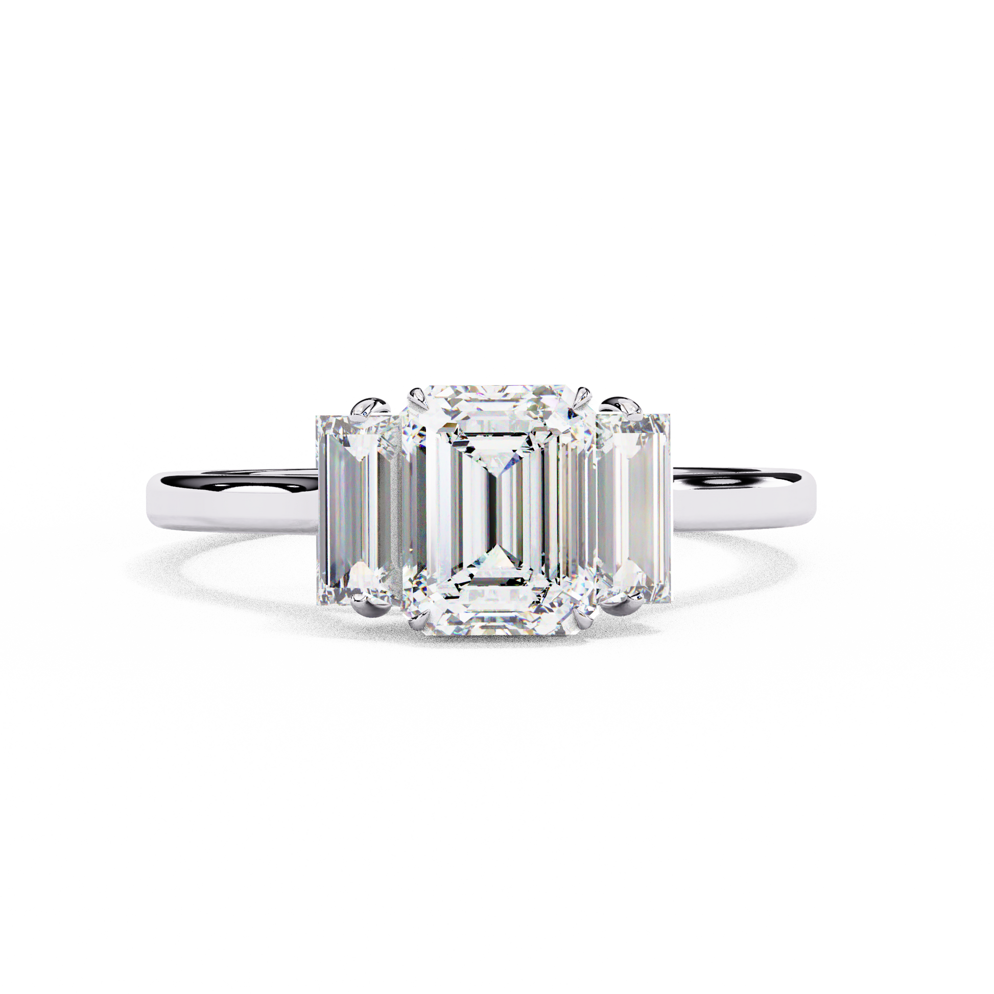 "Emerald Echo" captures the elegance of a central emerald-cut solitaire diamond, beautifully echoed by two straight baguette accent diamonds on either side. The name reflects harmony, balance, and a refined symmetry—like a timeless statement of grace and clarity. |