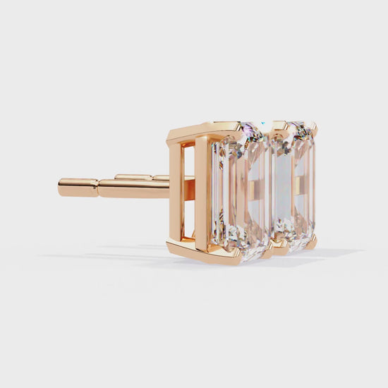 Emerald Grace Studs are elegant earrings featuring emerald-cut solitaires, known for their sleek lines and timeless beauty. The name captures the refined sophistication and graceful presence of the emerald cut, making them perfect for a classic yet modern look. |