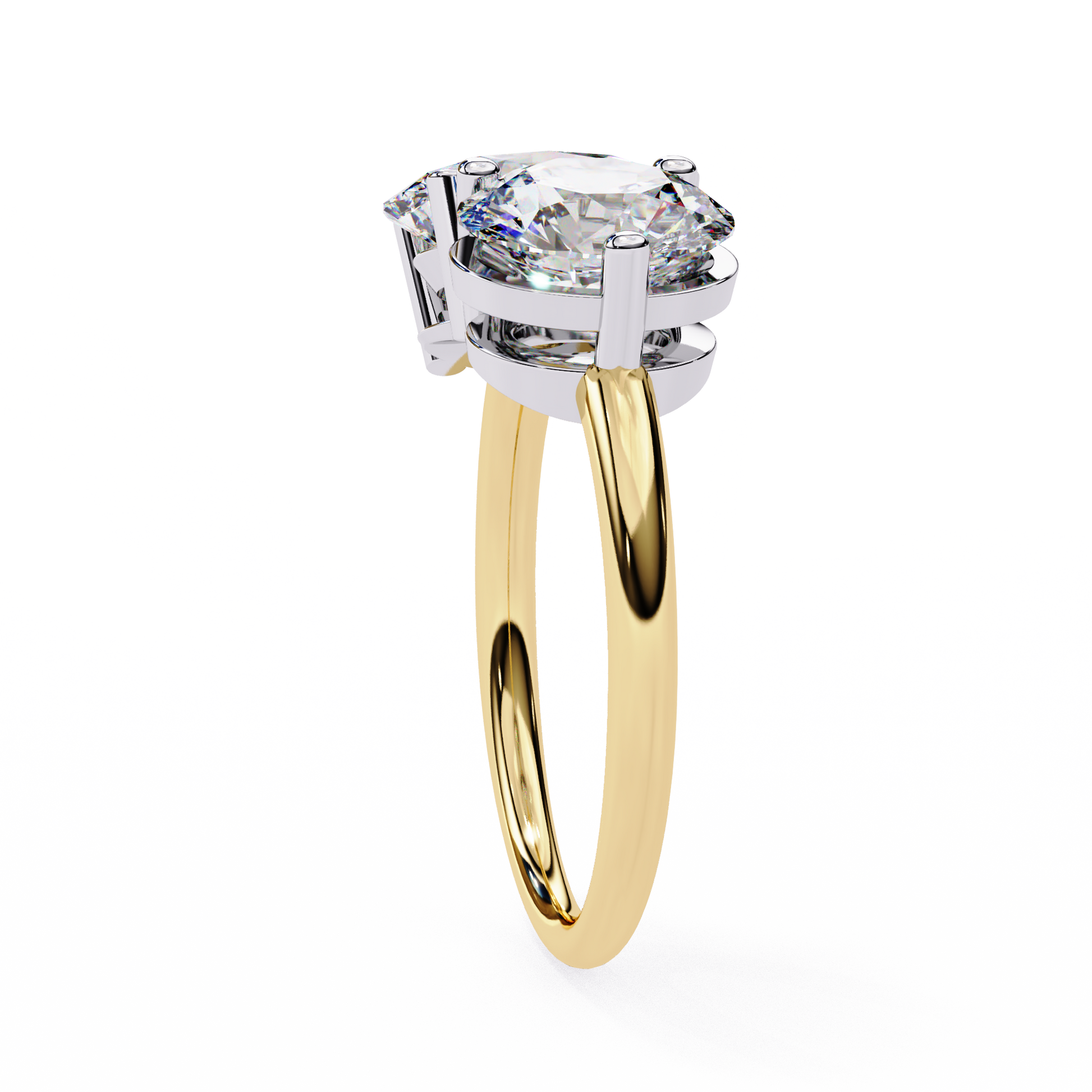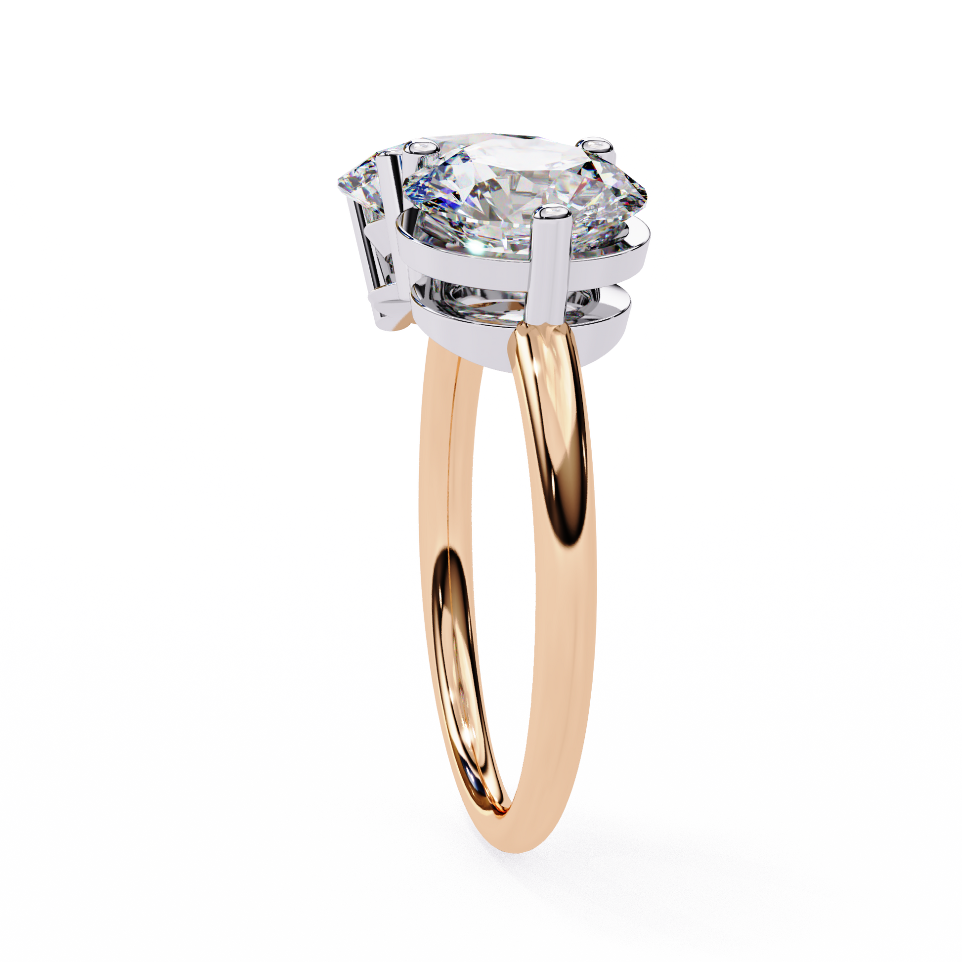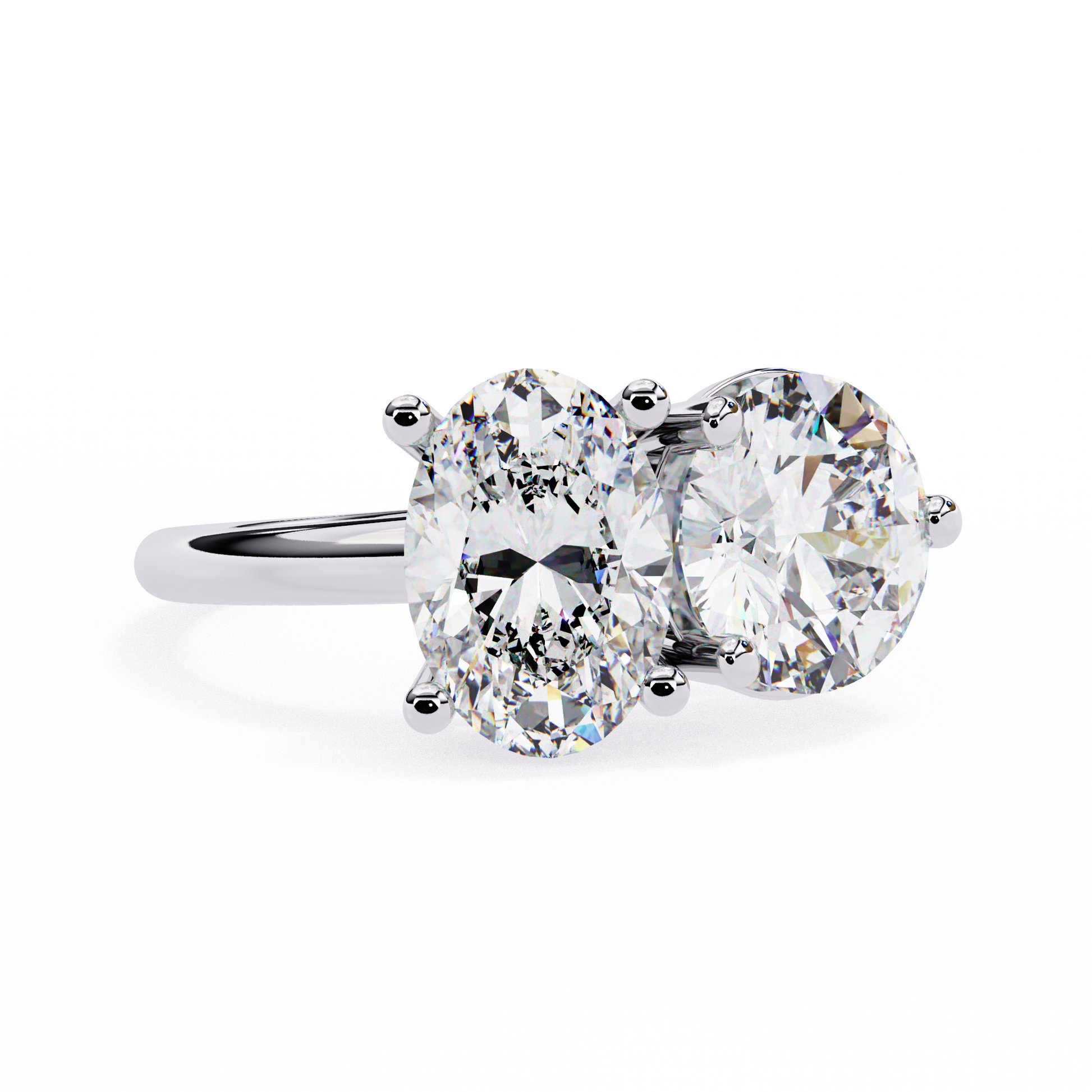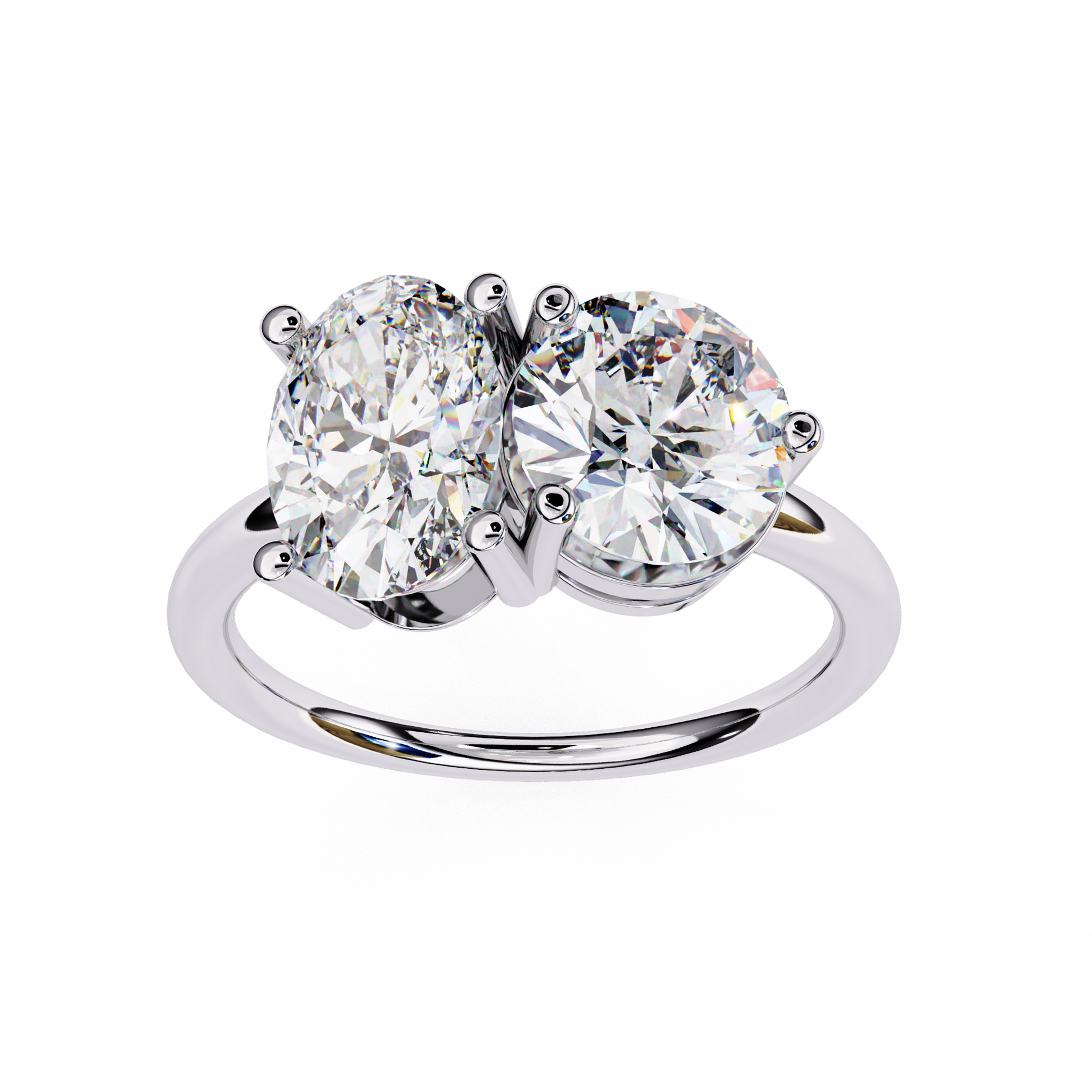 "Eternal Orbit" represents the graceful harmony between the oval and round solitaire diamonds, symbolizing two souls moving together in a timeless, unbreakable bond—like celestial bodies in an endless orbit. It conveys love, unity, and eternity. |