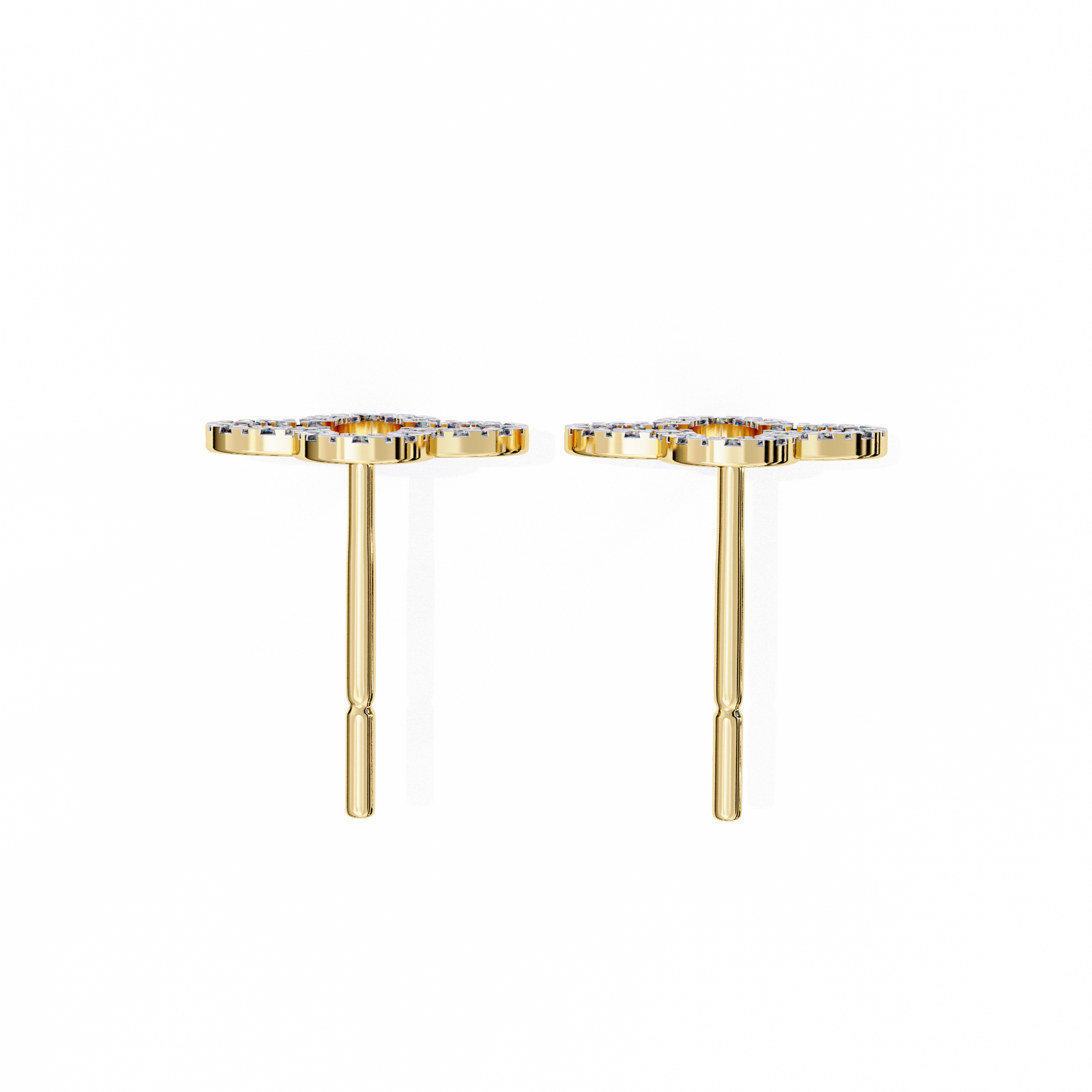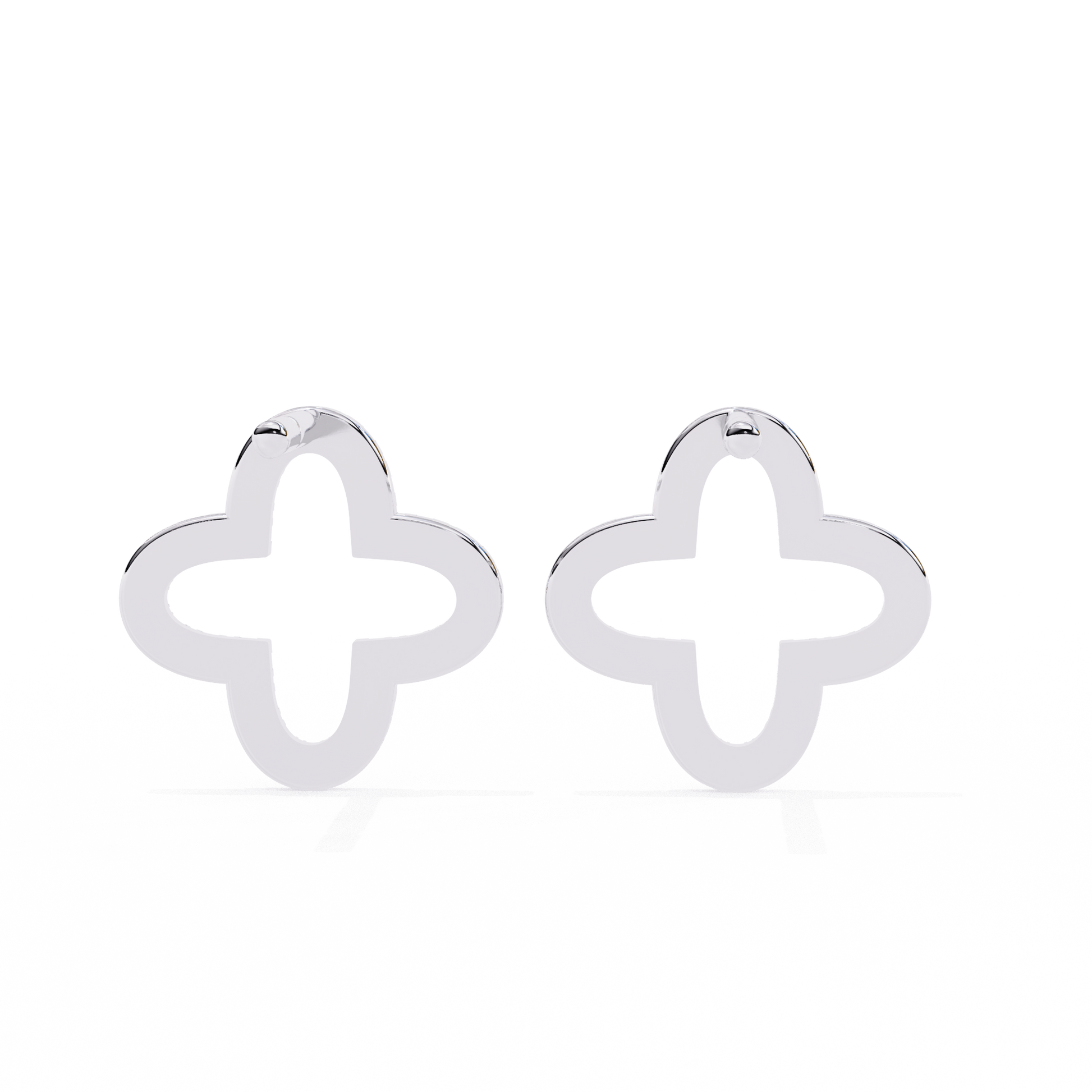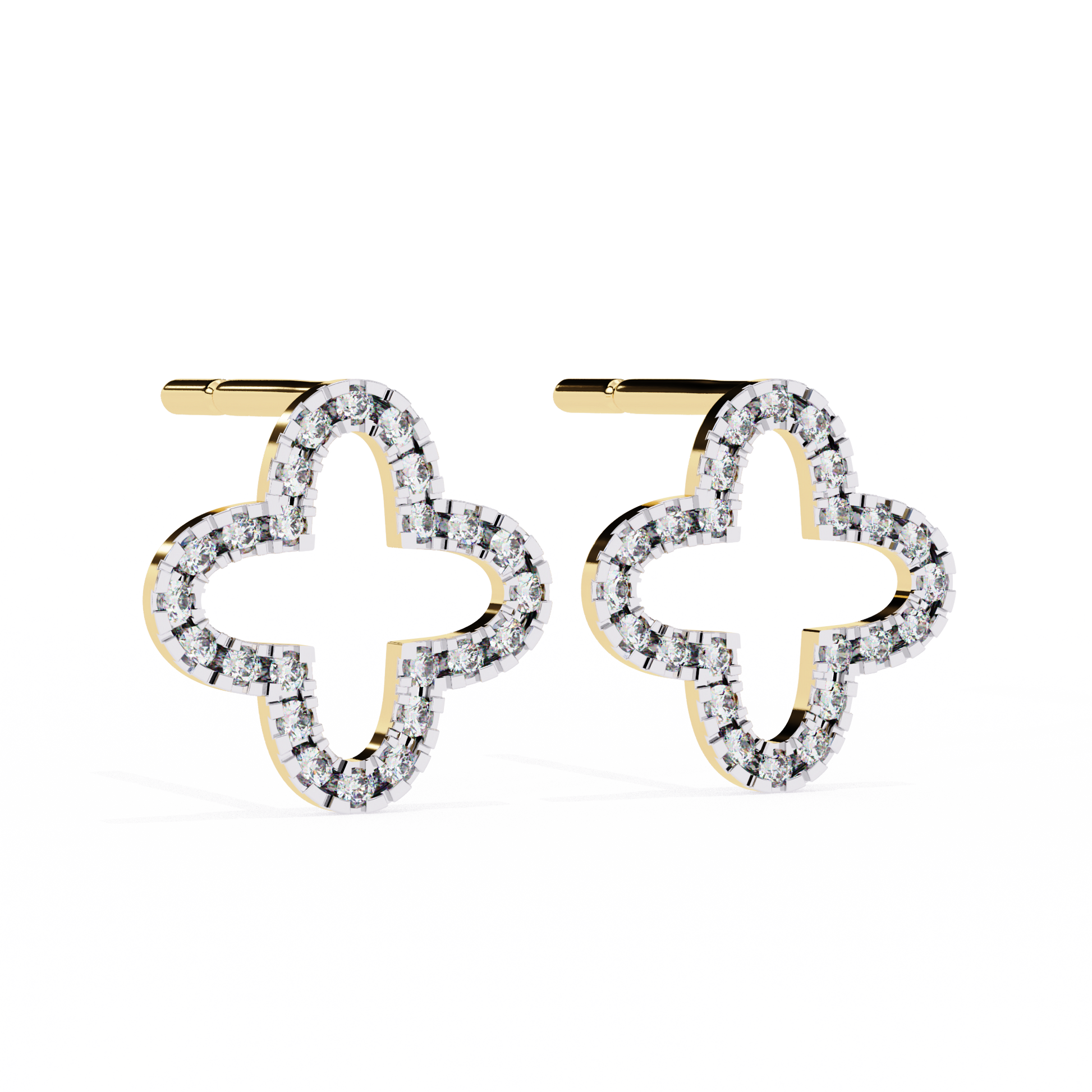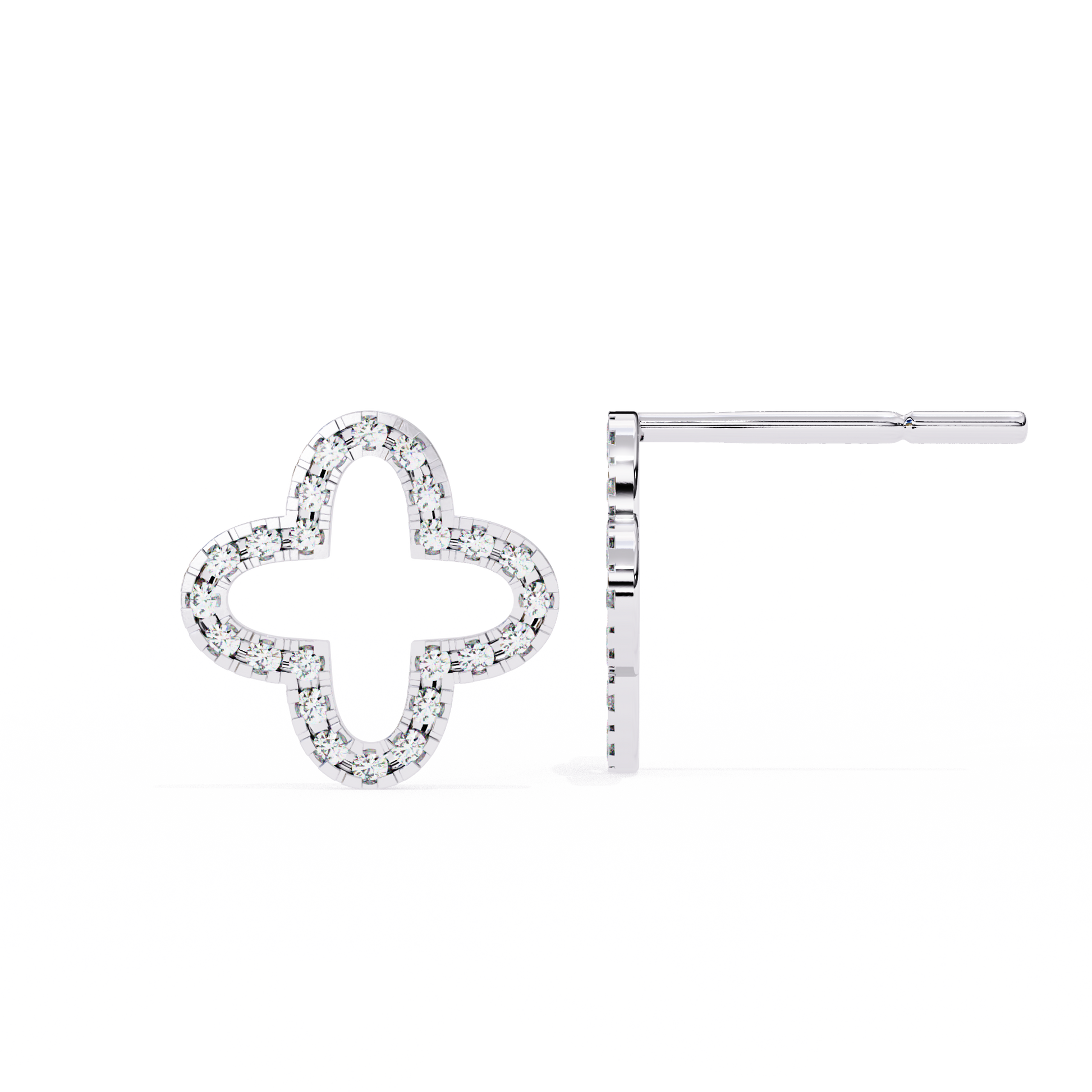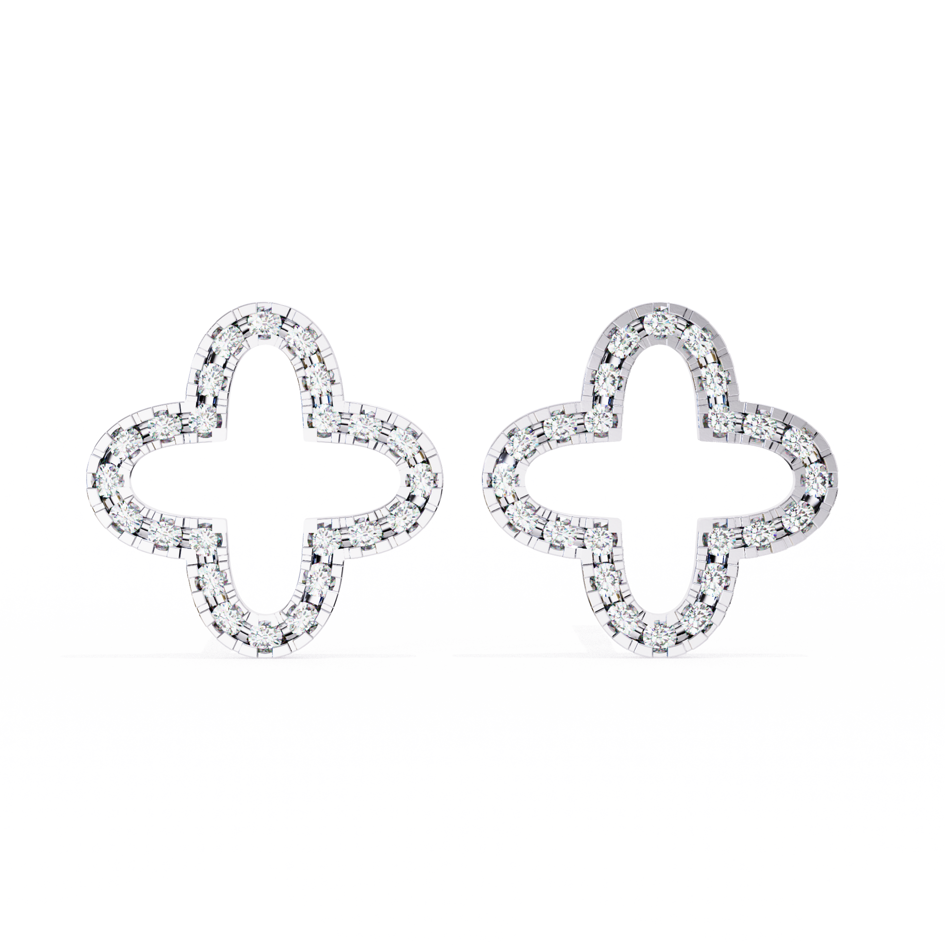 Floral Whisper Studs are delicate flower-shaped earrings with a sparkling diamond border and a graceful hollow center. The name evokes a soft, subtle elegance—like a gentle whisper of beauty and light. |