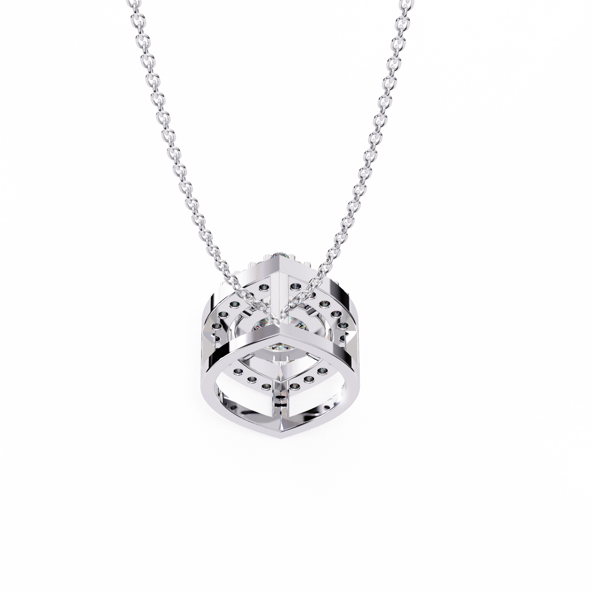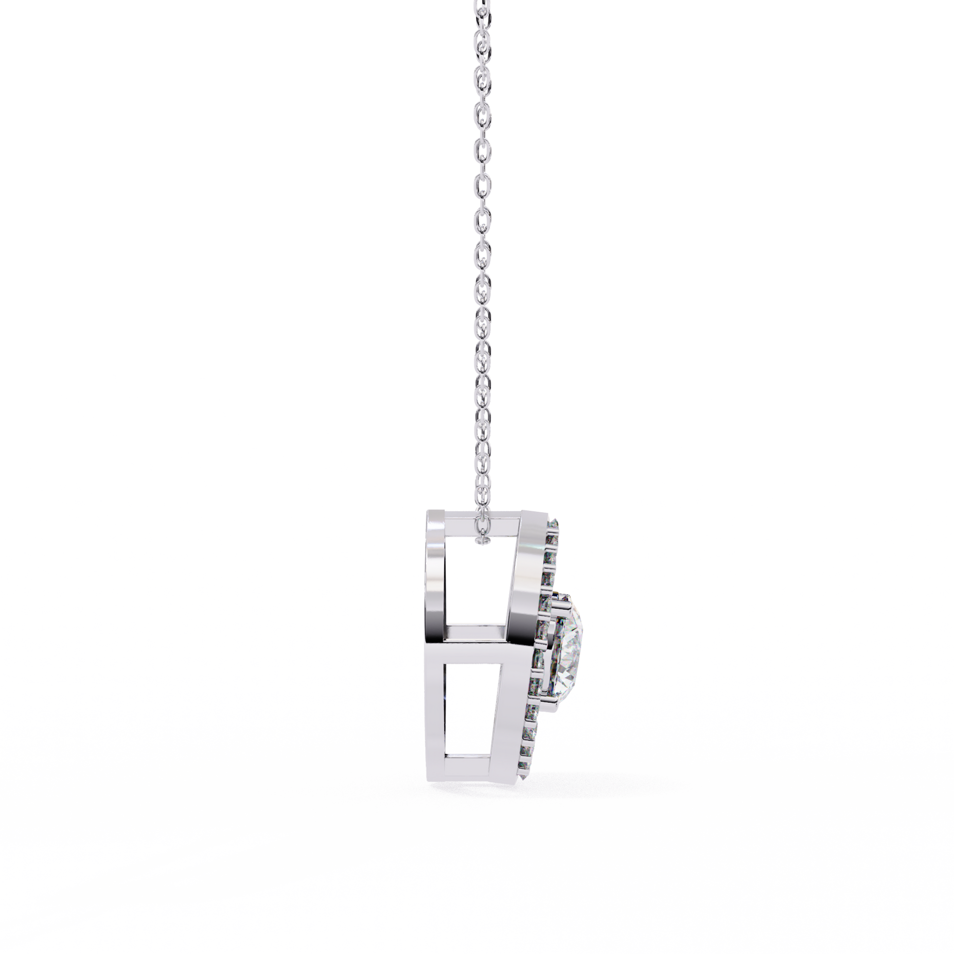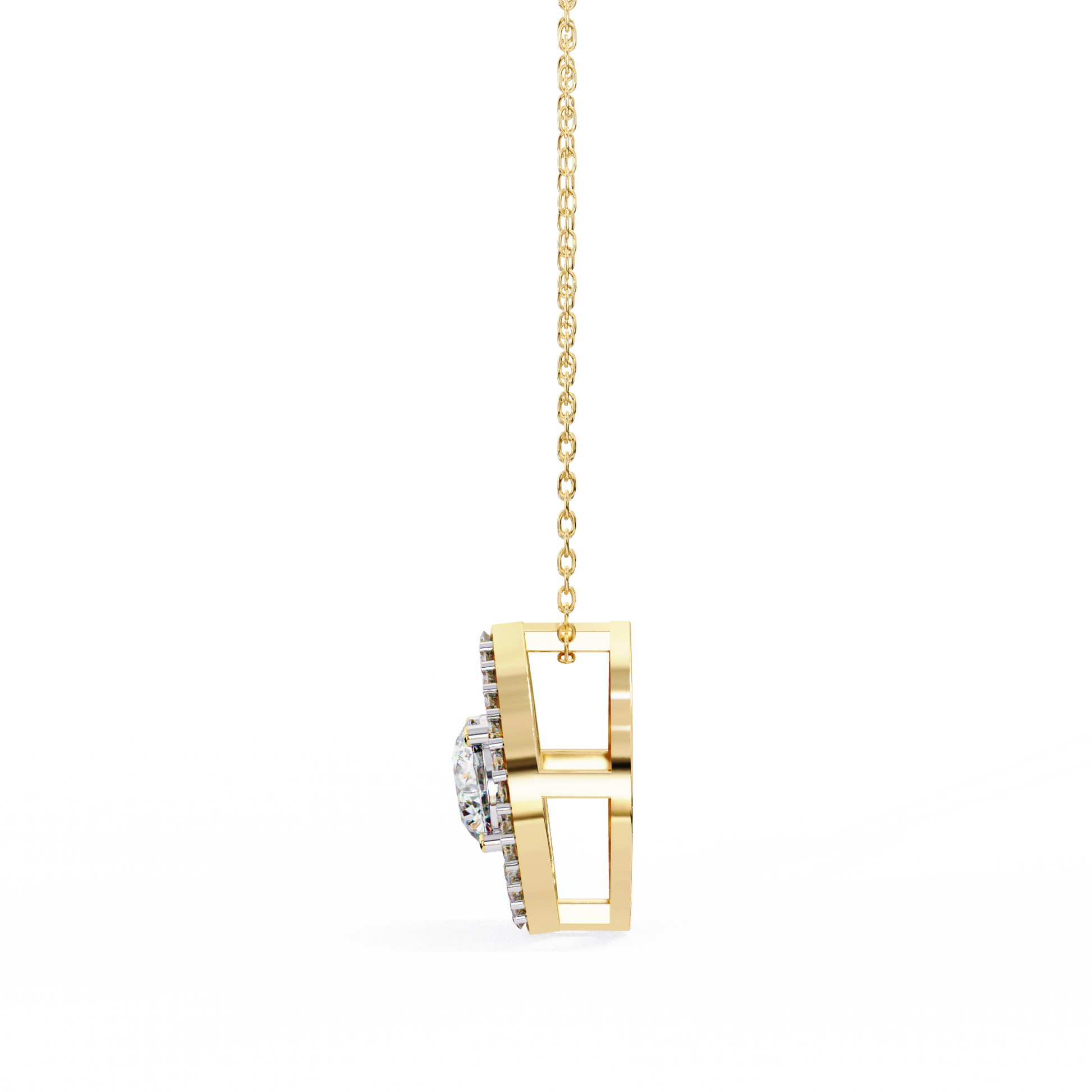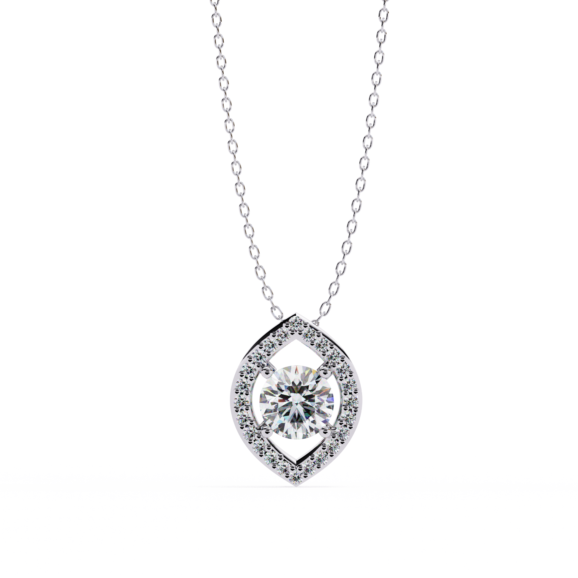 GlintEye combines "Glint" (a quick, bright flash of light) with "Eye", capturing the essence of a radiant eye-like pendant.It perfectly describes a round diamond pendant with a sparkling diamond border and a pointed center stone—symbolizing sharp vision, brilliance, and elegance in a clean, modern style.