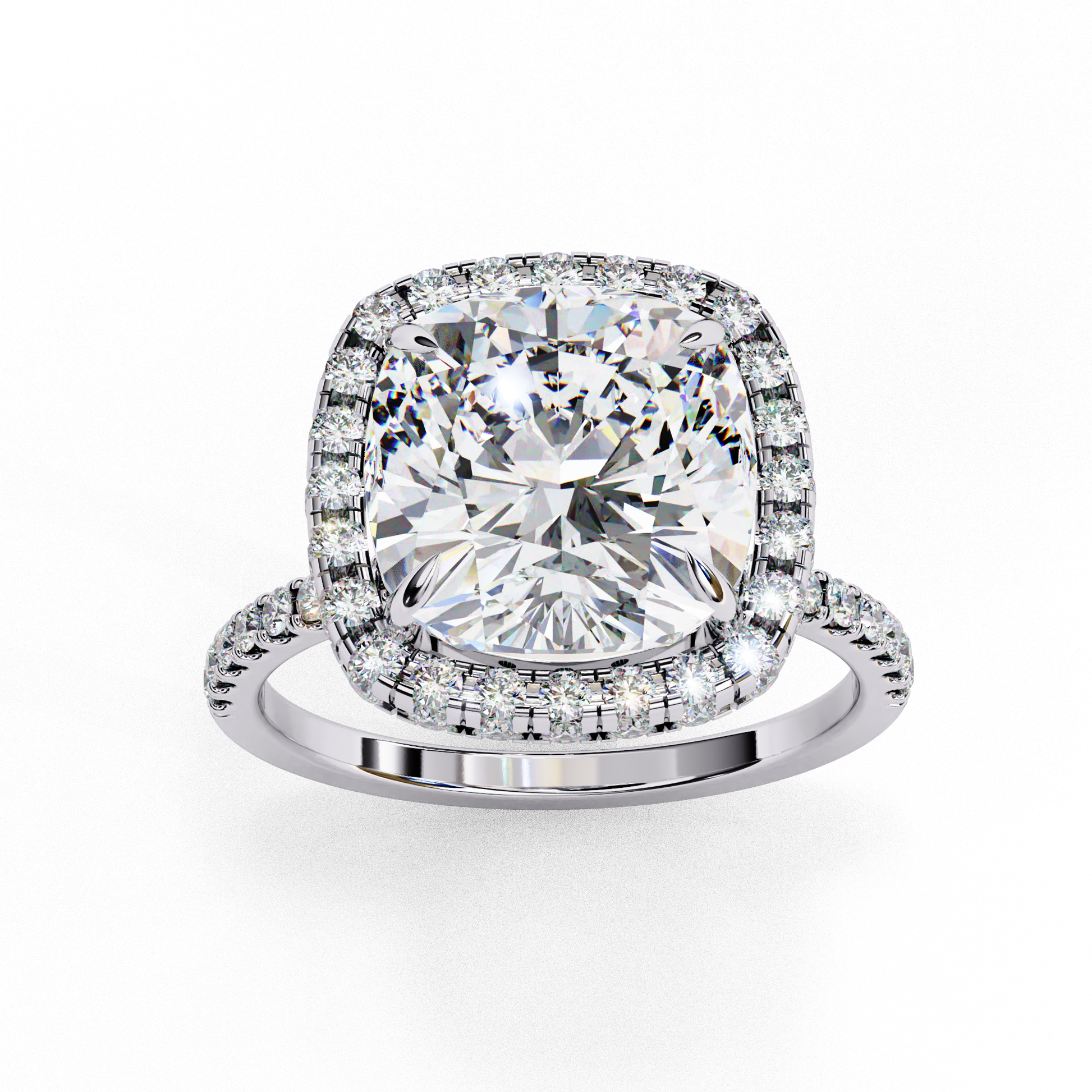 "LumiCush" is a modern, stylish name combining “luminous” and “cushion”, symbolizing the radiant glow of a cushion-cut solitaire diamond enhanced by the sparkle of round accent diamonds. It reflects both brilliance and elegance in a sleek, contemporary way. |