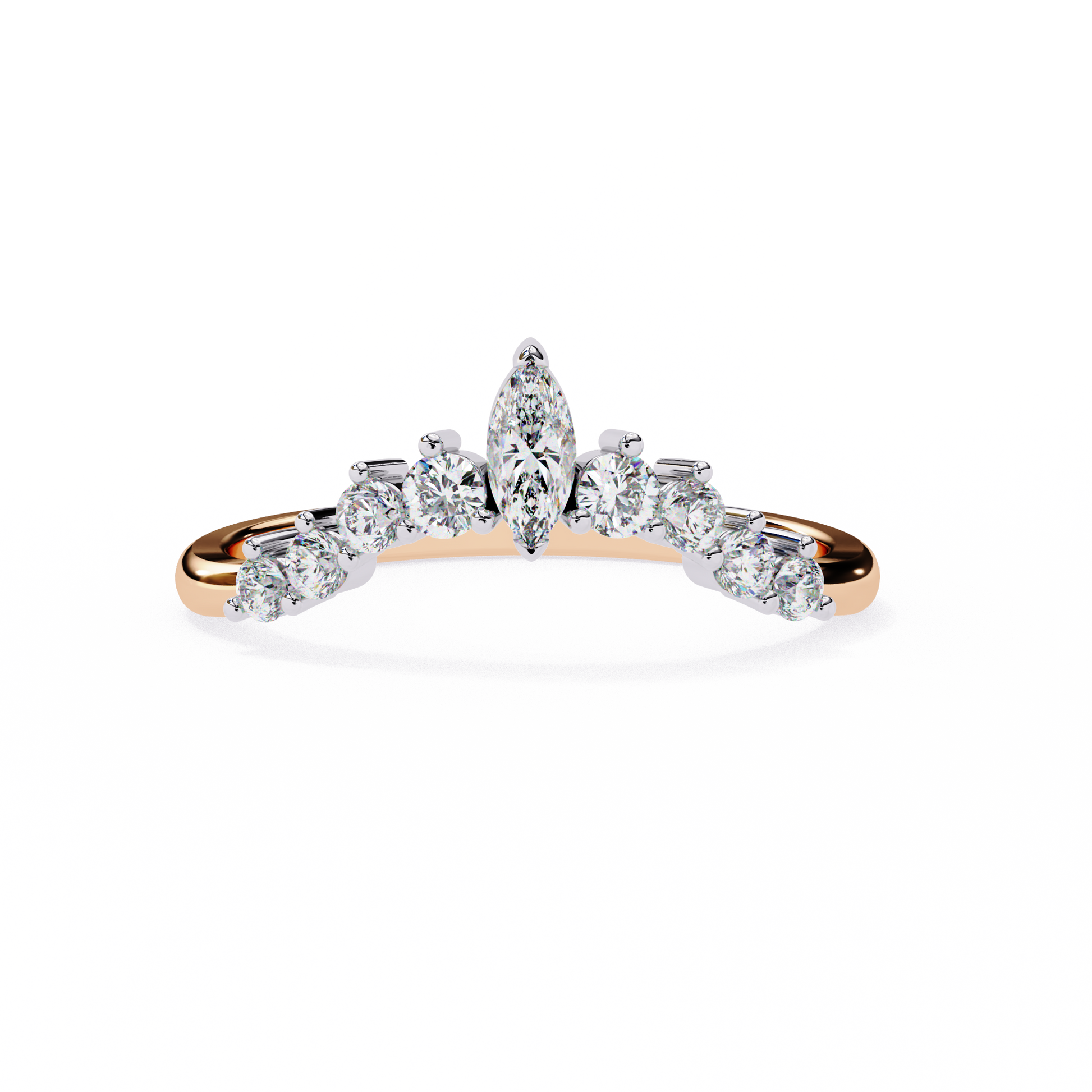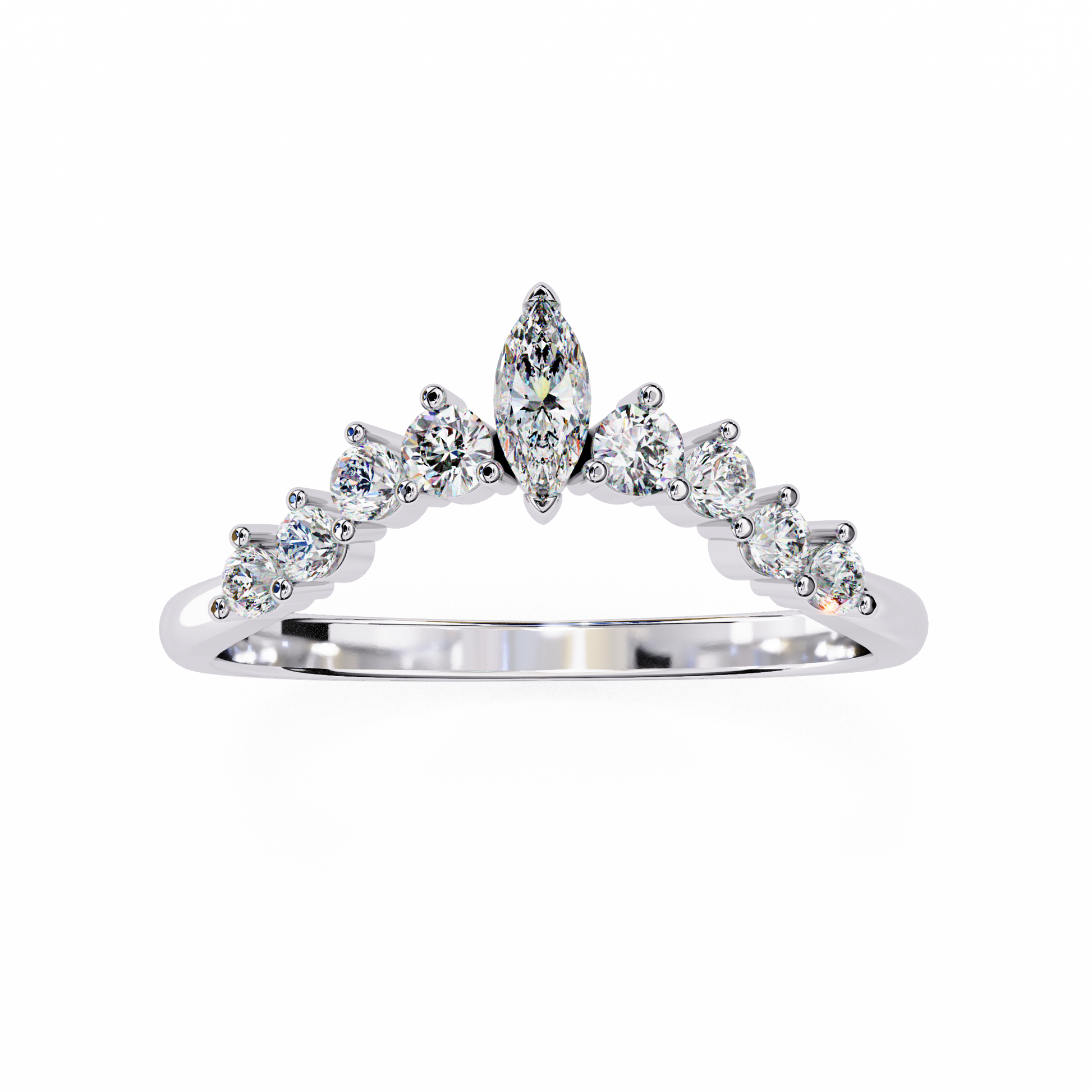 Mariselle Glow blends the refined beauty of marquise-cut diamonds (Mariselle suggests grace and sophistication) with the soft sparkle of round accent diamonds (Glow). It's a name that evokes timeless elegance and radiant charm—perfect for a band that shines with both structure and softness. |