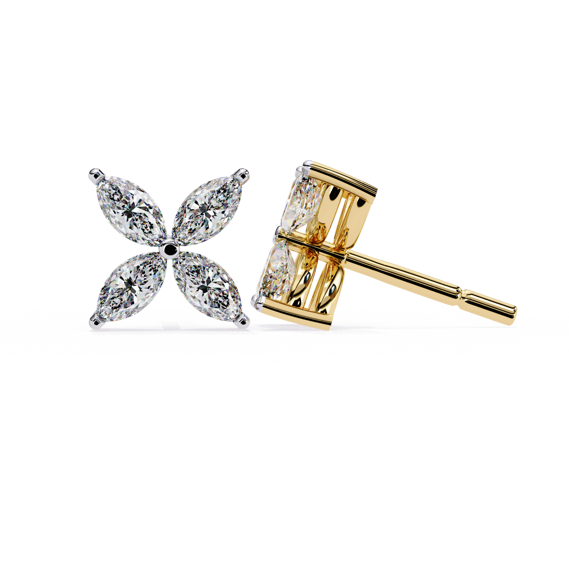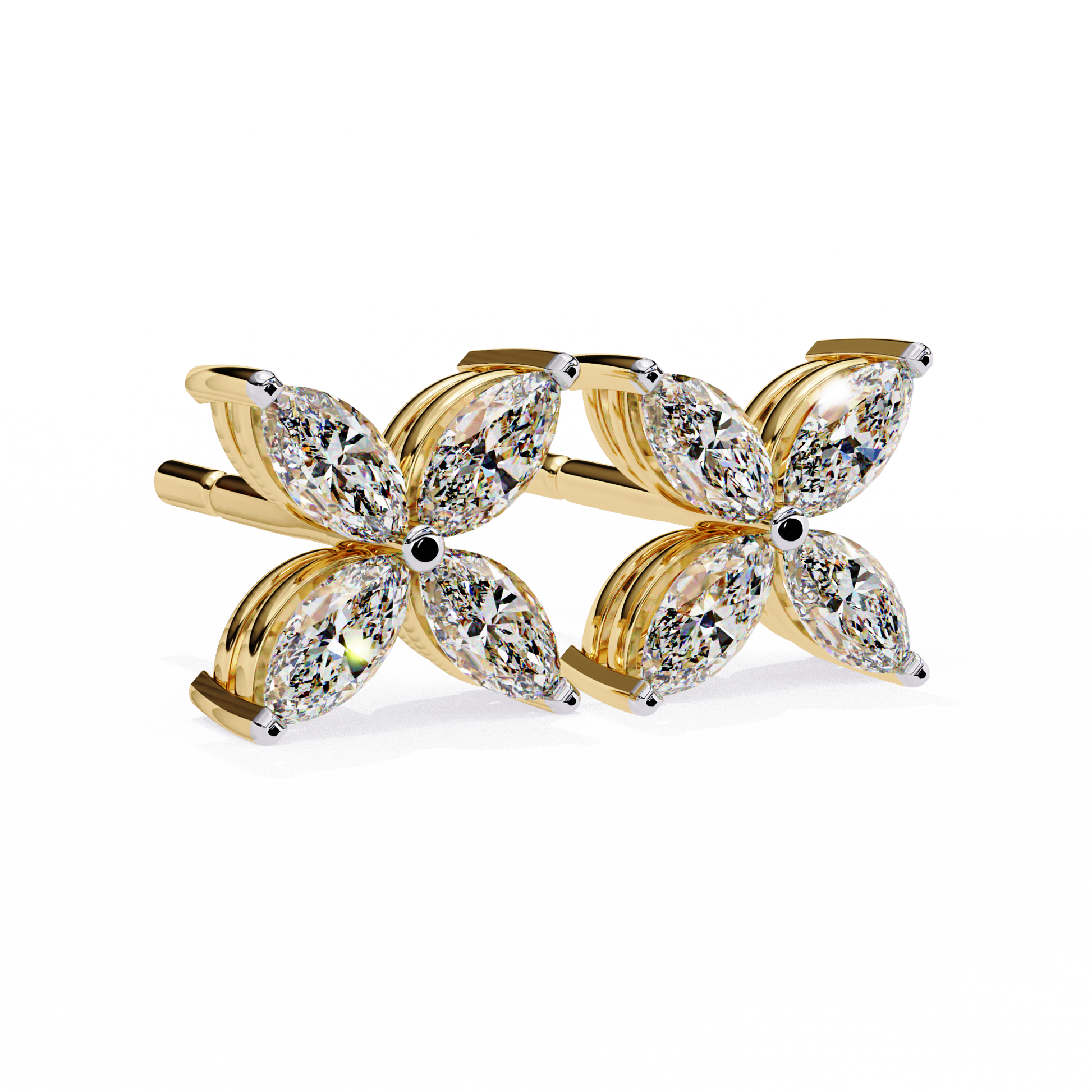 Petaluxe is a chic, elegant name blending “petal”—reflecting the marquise diamonds arranged like flower petals—with “luxe” (luxury). It captures the refined beauty and sophisticated floral design of the earrings, perfect for a luxurious, nature-inspired look.