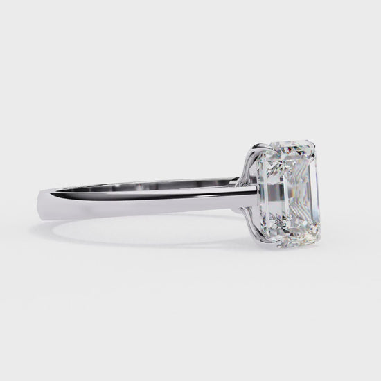 "Regal Clarity" highlights the majestic elegance and flawless brilliance of an emerald-cut solitaire diamond. The name reflects a royal, sophisticated style with crystal-clear facets that symbolize purity and grace. |