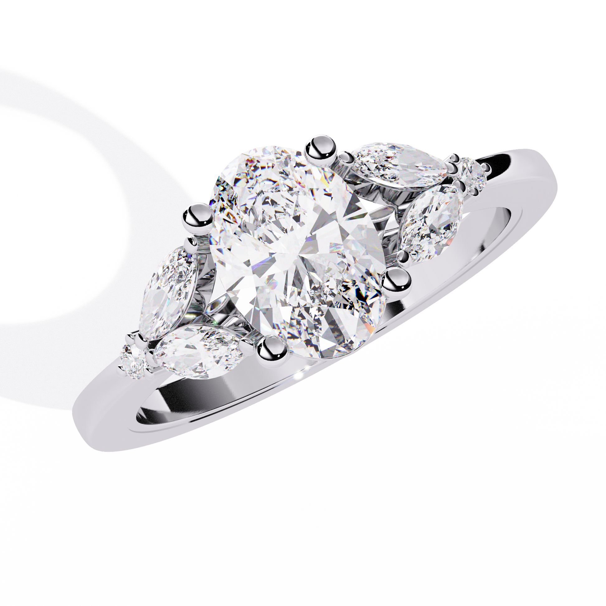 # of Diamonds : 7Total Carat Weight : 1.37ctSetting Type : ProngShape :- Round | Marquise | Oval