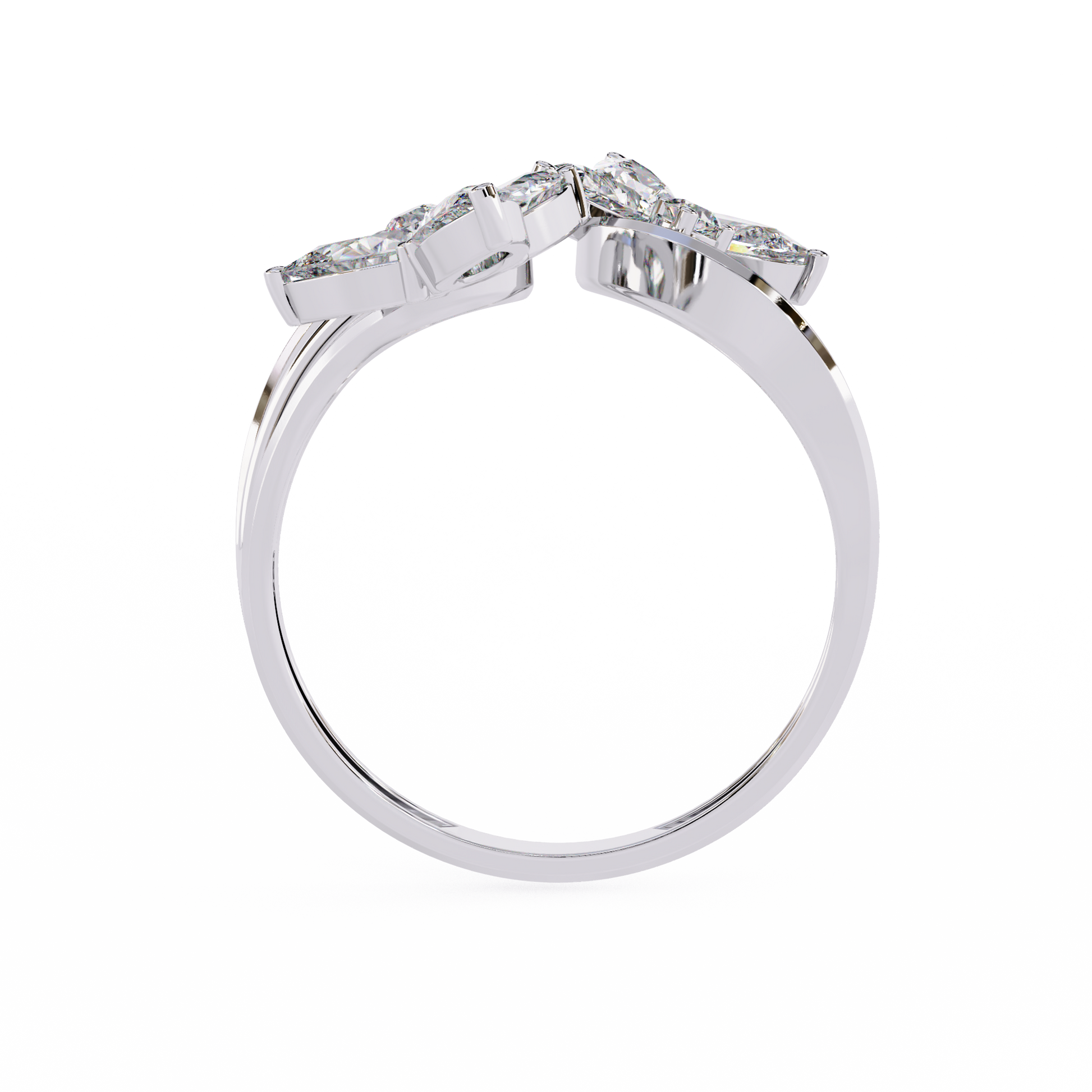 Symmetra is a refined, modern name derived from the word “symmetry,” symbolizing perfect balance and harmony. It reflects the ring’s elegant design—three pear-shaped diamonds on each side in a mirror-like layout, connected by an open band with two accent stones. The name evokes sophistication, grace, and equilibrium, making it ideal for a piece that celebrates unity and beauty in symmetry. |