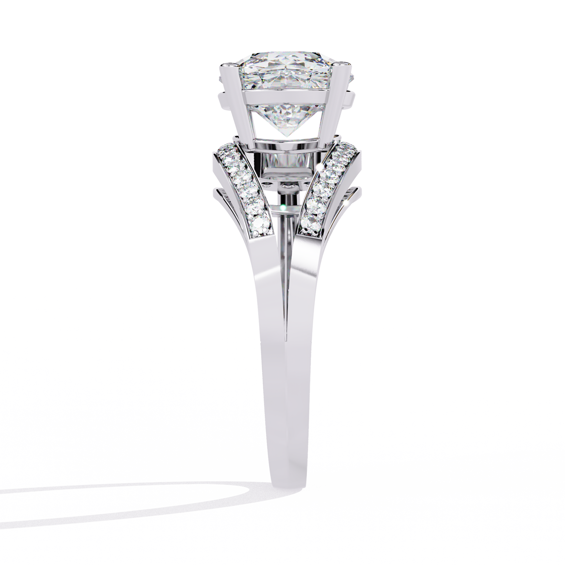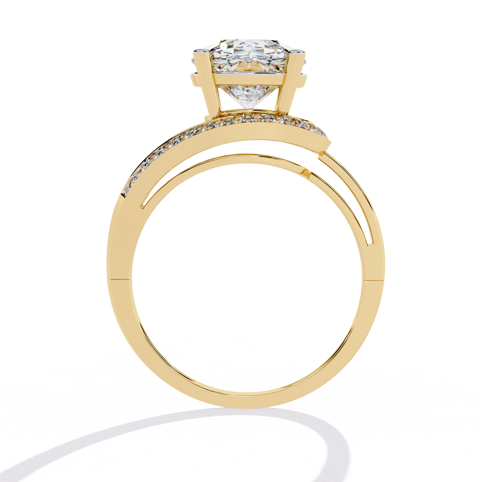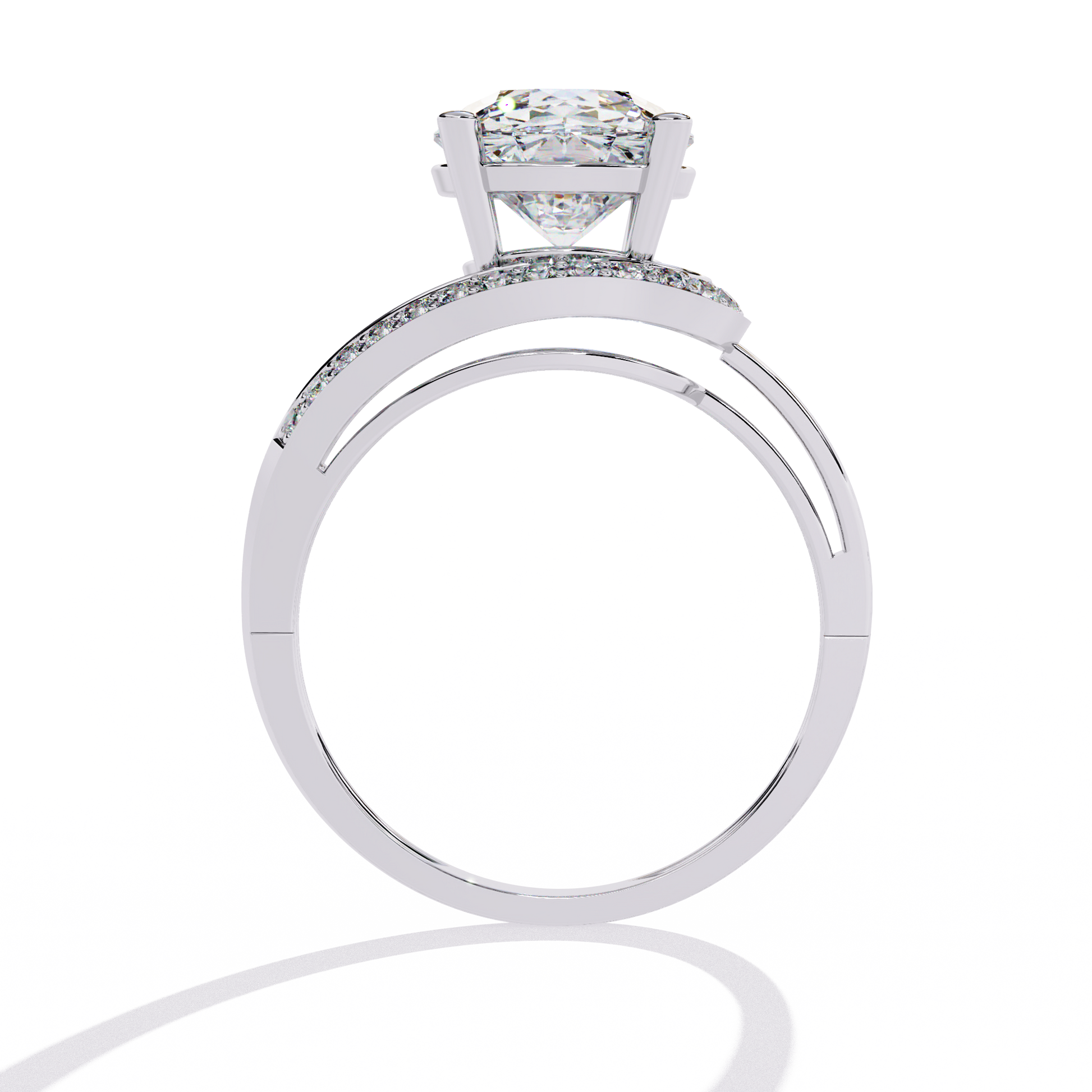 Twilight Embrace – A graceful design where the split shank curves around a brilliant round solitaire, like twilight gently wrapping the last light of day. The accent diamonds along the band enhance the soft, radiant glow. |